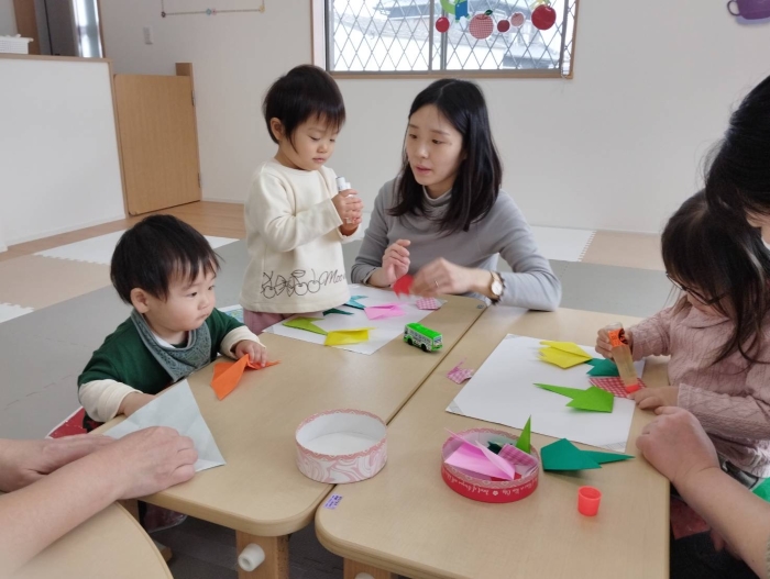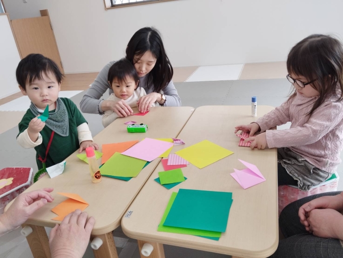 にこにこ広場 紀の川センター保育所で「にこにこ広場」を開催 2025.05.09 📝2025.3.6今日のにこにこ広場には、2組ご参加して下さいました。 もうすぐ春ですね~🌸みんなで折り紙を使って、チューリップ🌷やクローバー🍀を折って遊びました。折り紙を折るのが初めてのお友達もいましたが、お母さんと力を合わせて折る事ができました!そして素敵な春が完成しましたよ✨ またのご参加お待ちしています😄 【紀の川保育所】 濵上 おりがみであそぼう! うまくおれるかな…? きれいなチューリップ💕上手にできました!✨️ Tweet Share Hatena Pocket RSS feedly Pin it この記事のタイトルとURLをコピーする 紀の川センター保育所で「にこにこ広場」を開催 前の記事 伊都センター保育所で「にこにこ広場」を開催 次の記事