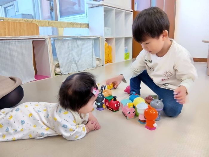 3歳2ヶ月と5ヶ月の兄妹が遊びに来てくれました。
