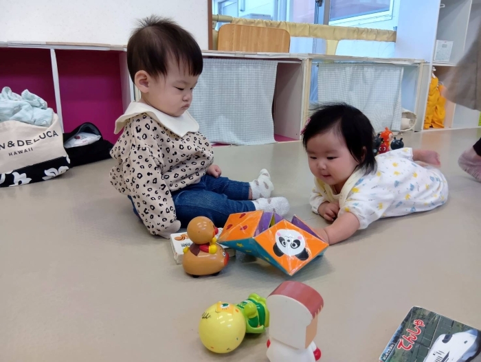 センター見学で9カ月の女の子も来てくれていて、一緒に遊びました。💕