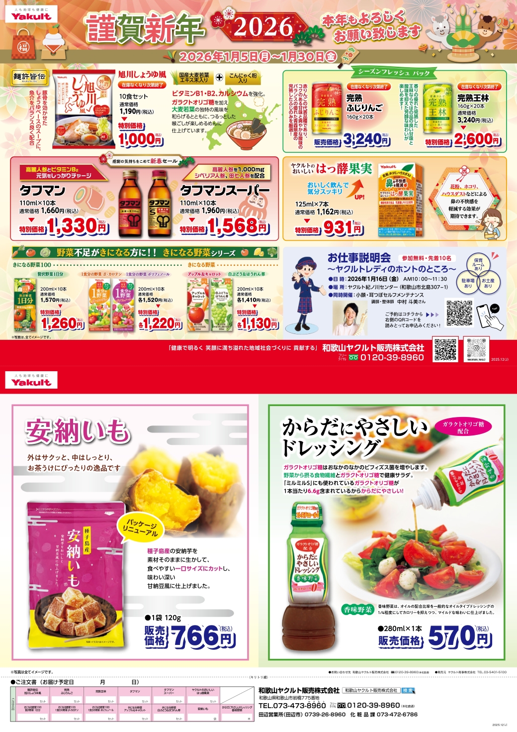 1月のセール商品 2026.01.06 あけましておめでとうございます!🎍本年も和歌山ヤクルトをどうぞよろしくお願いいたします😌 今年は午年🐎ですね。健康管理も「ウマく」いく、最高のスタートを切りませんか?毎日のヤクルト習慣で、心も体も軽やかに駆け抜けましょう!✨ 1月のセール商品です🎍 Tweet Share Hatena Pocket RSS feedly Pin it この記事のタイトルとURLをコピーする 12月のセール商品 前の記事