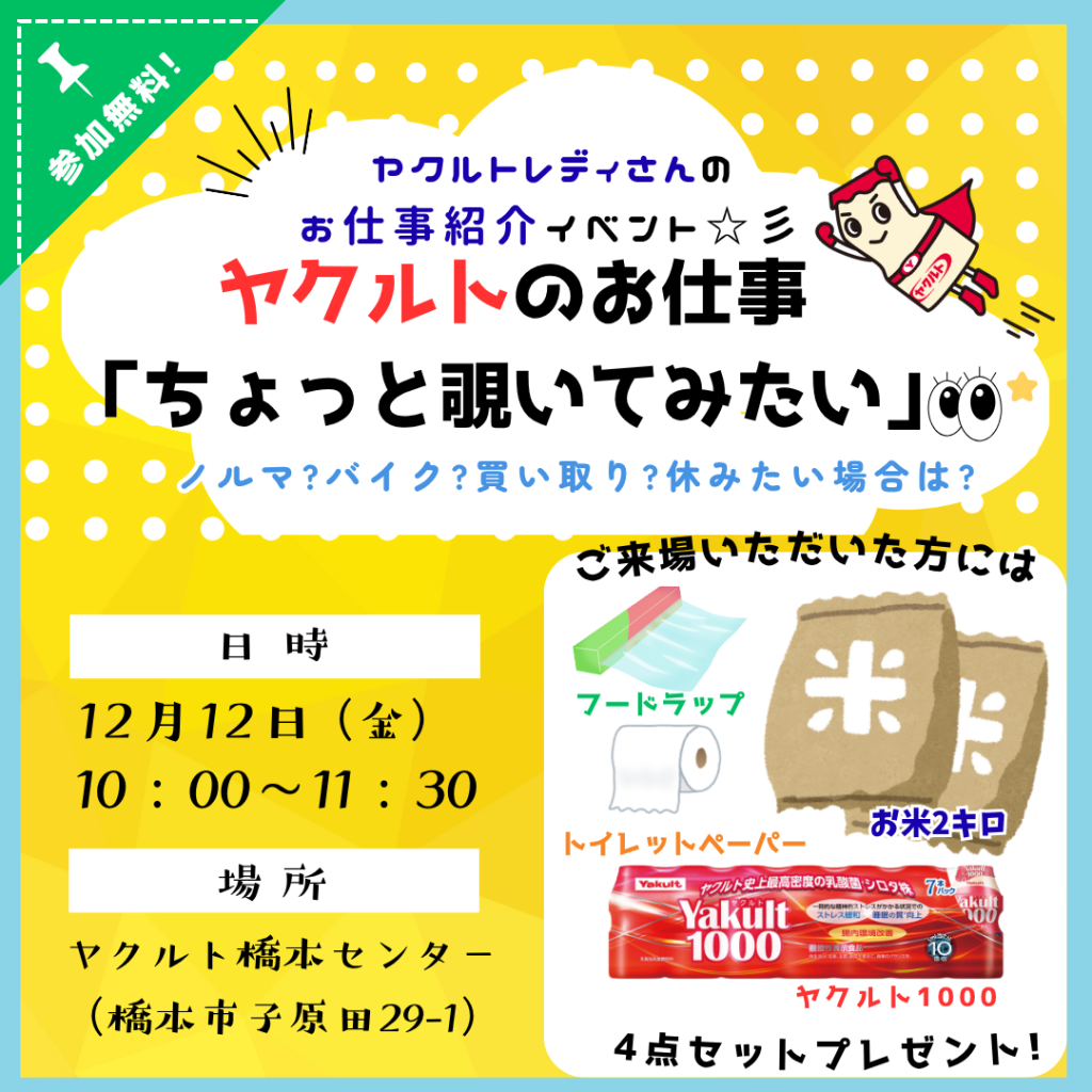 ヤクルト橋本センターでお仕事紹介イベントを開催します!🎈